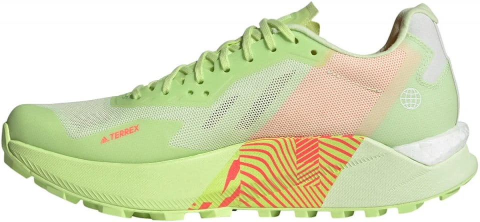De TERREX AGRAVIC ULTRA is ontworpen in nauwe samenwerking met een van ’s werelds snelste ultra-trailrunners, EKATERINA MITYAEVA. Dit is een van de eerste adidas trailrunningschoenen met een plaat van thermoplastisch elastomeer (TPE) op bio-basis, gemaakt van 90% hernieuwbare koolstof.​ ​Over de hele lengte van de schoen, ingeklemd tussen de middenzool en loopzool, biedt de TPE-plaat op bio-basis lichte, robuuste bescherming tegen rotsen op lange afstanden in de bergen.​ Gemaakt met behulp van hernieuwbare koolstofbronnen en ingrediënten op bio-basis.​ De combinatie van responsieve Boost en ultralichte Lightstrike werkt samen met een plaat van TPE voor krachtige energieteruggave op bergachtig terrein, en dempt daarbij ook je stappen, waardoor jij op technische trails het tempo erin kunt houden.